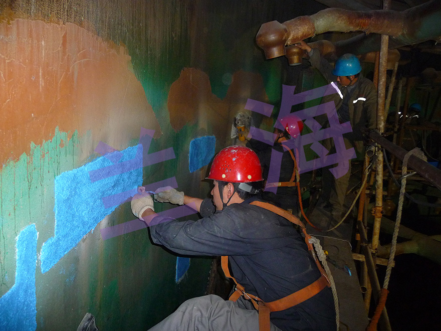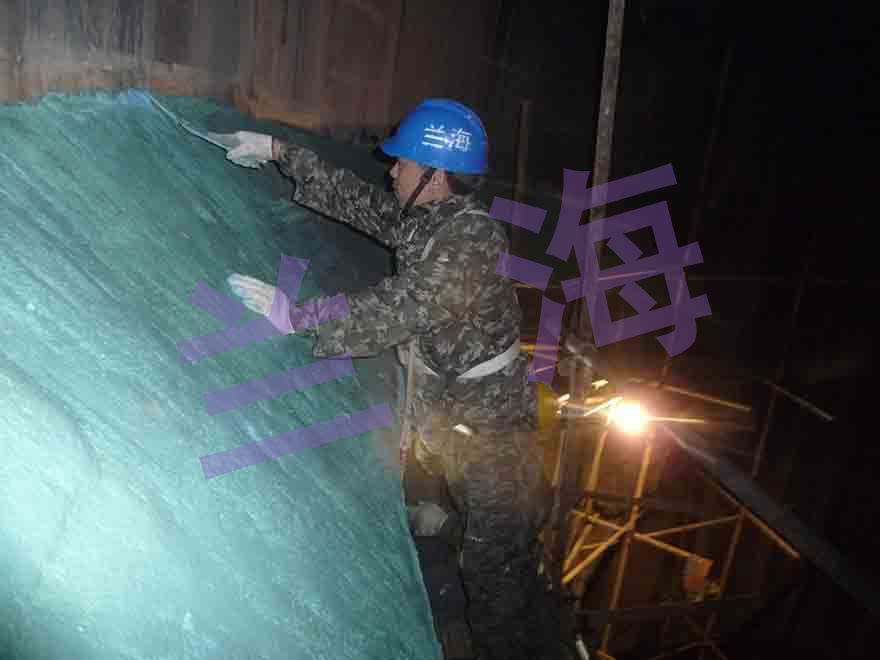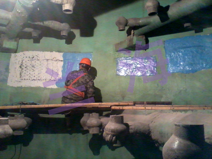 吸收塔噴淋層襯瓷修復(fù)現(xiàn)場